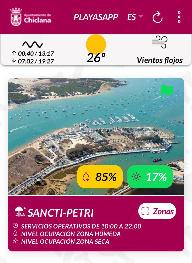 Información playas Práctica aplicación para consultar el porcentaje de ocupación de las playas de Chiclana. PLAYASAPP enlace a descarga NAUTIDE APP. Muy útil para conocer el estado del mar y las mareas. Compártelo: Compartir en X (Se abre en una ventana nueva) X Compartir en Facebook (Se abre en una ventana nueva) Facebook Me gusta Cargando...